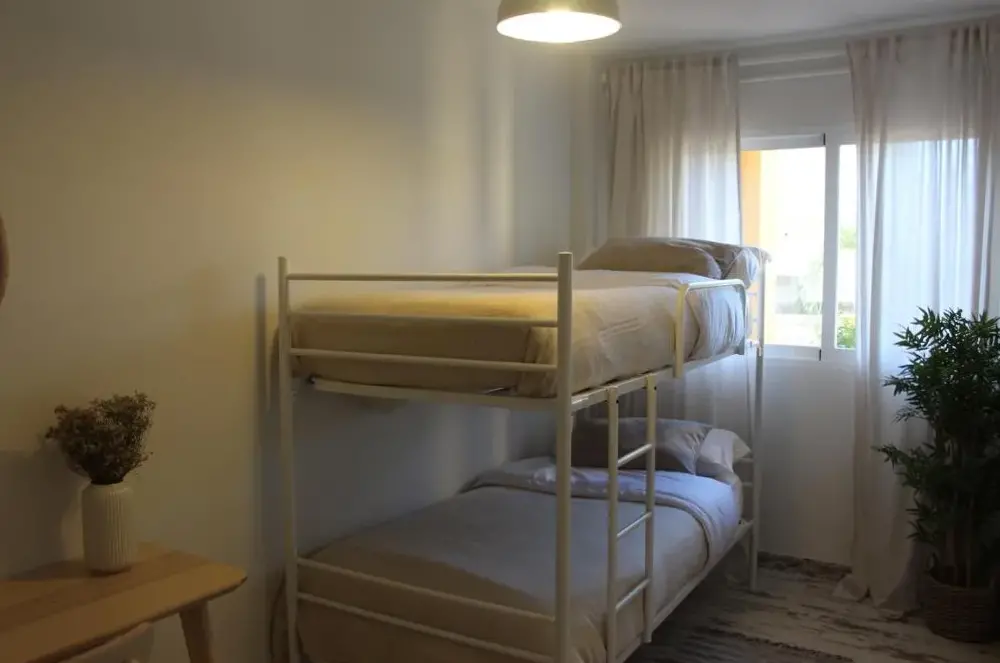 El baño... se salía el agua de la bañera al suelo. La mampara no estaba bien, le faltaba la goma inferior. Necesita aire acondicionado...muy caluroso y mobiliario en el baño. Las puertas de los armarios no funcionan.